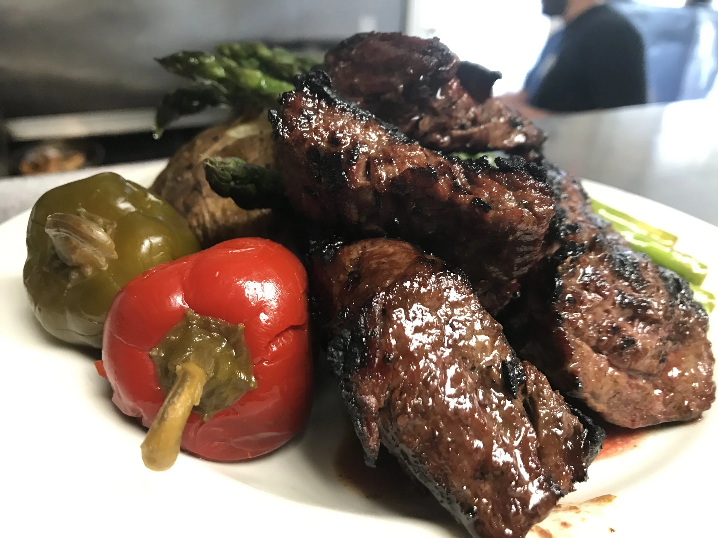 Hand cut Angus sirloin steak tips, grilled with our own savory marinade. Served with choice of potato or wild rice, vegetable of the day and grilled hot cherry pepper. $32
